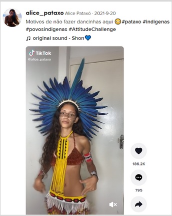 It is interesting to note how some profiles are very influential on TikTok, but by comparison they have few followers on other networks. In this sense, the analysis of TikTok allowed us to perceive a network of indigenous activism with a vast connection between them — from the use of hashtags — that seek to place the indigenous agenda as the main target of their posts, appropriating the repertoire of each platform and structuring in a planned way its communication with users.